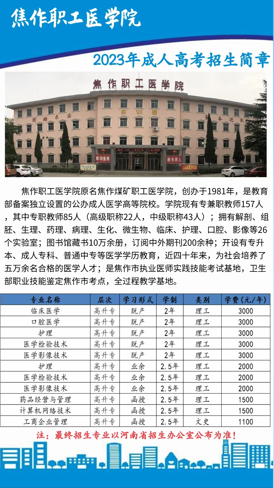 焦作职工医学院2023年成教招生简章